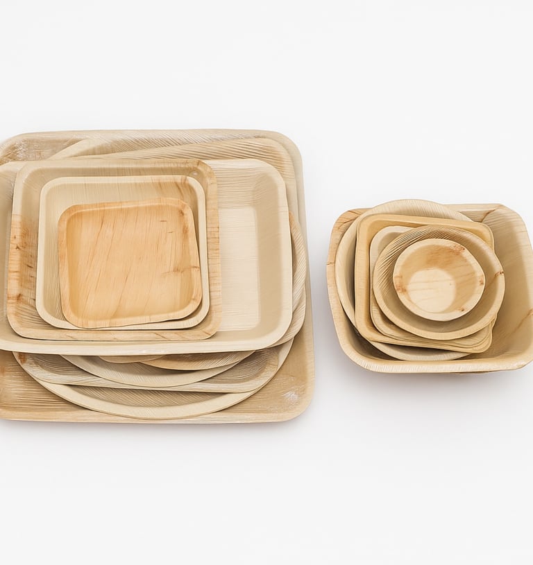 palm leaf plates, Sugarcane pulp containers and kraft containers displayed prices are starting for 50 pieces.